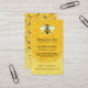 Estas bellas tarjetas de visita cuentan con arte original de abejas y son perfectas para un apicultor | vendedor de miel. La parte delantera muestra una abeja más grande en forma de peine de miel con un patrón de fondo de peine de miel hecho a mano. La miel gotea a lo largo del borde inferior. La parte trasera tiene un patrón de abejas más pequeñas con un borde de miel. Utilice las plantillas sencillas para agregar el texto personalizado. En la parte delantera, hay plantillas para el nombre de la granja de abejas, su nombre o título, la dirección, número de teléfono y sitio web. En la parte trasera hay espacio para más textos, como una lista de productos que ofrece. Si desea realizar cambios más detallados, también puede "personalizar" más adelante. Cada elemento de estas tarjetas se puede reorganizar y cambiar de tamaño por separado. Atrapa el ojo de sus clientes con estas dulces tarjetas de visita para los apicultores.