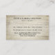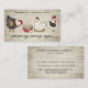 Estas tarjetas de presentación de huevos frescos de granja presentan un encantador diseño acuático pintado a mano con un ambiente rústico y vintage. Perfecto para la venta de huevos de granja y hueso casero, estas tarjetas resaltan su negocio familiar y la naturaleza orgánica y de campo libre de sus huevos de gallina. El diseño original y encantador atrae a los clientes potenciales. Personalice estas tarjetas de negocios de huevos frescos con el nombre del propietario de la empresa, el nombre y el nombre de la empresa, y todos los datos de contacto. Estas tarjetas de pollo son perfectas para granjas de pollo, hueveras, mercado de granjeros, granjas orgánicas, granjas administradas por la familia. La tarjeta de visita es de doble cara. DERECHOS RESERVADOS © 2020 Judy Burrows, Black Dog Art - Todos los derechos reservados. Vintage Farm Fresco Huevos Cute Chickens Farm Business Card