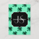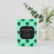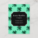 Personalice y personalizar elegante tarjeta de negocios falsa y brillante con su nombre y inicial. Hermosa tarjeta de negocios turquesa del día de San Patricio: trébol con brillantes verdes inteligentes purpurinas. ¡Foto de chispas, no purpurina real!