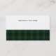 Tarjeta De Visita Green y Black Graham Tartan Plaid Personalizado