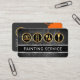 A grey grunge cover features an array of gold painting tools with a silver striped layer near the base of the card. Here lies the business name "PAINTING SERVICE" which you can change.