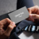 Tarjetas de visita personalizado gris monotónico con fuente blanca.