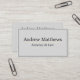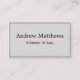 Elegante, simple, profesional, tarjeta de visita de personalizable para empresas y abogados con un texto de tipo simple sobre un sólido fondo gris. El texto de ejemplo se muestra para un abogado, pero también es perfecto para fotógrafos, diseñadores de moda, decoradores y otras ocupaciones creativas.