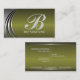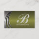 Tarjeta De Visita gris plateado metalizado, monograma verde oliva