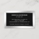 Tarjeta profesional optometrista con hermosas estrellas plateadas confeti con detalles falsos de Relieve metalizado plateado sobre un fondo negro. Añade tu nombre y datos de contacto para hacer una primera impresión duradera.