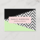 Elegantes, elegantes y sofisticadas tarjetas de visita con zigzag (chevron) de color gris y blanco con pinzas de menta y negro de color. Diseño moderno y de moda, perfecto para los amantes del zigzag.
