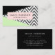 Elegantes, elegantes y sofisticadas tarjetas de visita con zigzag (chevron) de color gris y blanco con pinzas de menta y negro de color. Diseño moderno y de moda, perfecto para los amantes del zigzag.