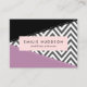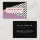 Elegantes, elegantes y sofisticadas tarjetas de visita con zigzag (chevron) de color gris y blanco con parches de color morado y negro. Diseño moderno y de moda, perfecto para los amantes del zigzag.