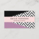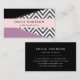 Elegantes, elegantes y sofisticadas tarjetas de visita con zigzag (chevron) de color gris y blanco con parches de color morado y negro. Diseño moderno y de moda, perfecto para los amantes del zigzag.