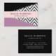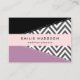Elegantes, elegantes y sofisticadas tarjetas de visita con zigzag (chevron) de color gris y blanco con parches de color morado y negro. Diseño moderno y de moda, perfecto para los amantes del zigzag.