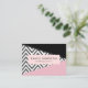 Elegantes, elegantes y sofisticadas tarjetas de visita con zigzag (chevron) de color gris y blanco con manchas de color rosa y negro. Diseño moderno y de moda, perfecto para los amantes del zigzag.
