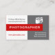 Tarjeta De Visita Grises, blancos, rojos llamativos fotógrafos