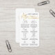 Asegúrese de que sus clientes del salón siguen la correcta después de cuidado con esta elegante tarjeta de negocios Tiny Tattoo. Esta minúscula tarjeta de instrucciones de tratamiento de tatuajes incluye iconos para cada paso, letra de guión de oro metálico y espacio para su logotipo. Una elegante tarjeta de artista de PMU blanca y dorada que hará una impresión duradera.