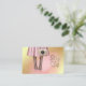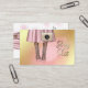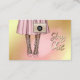 Glamorosas tarjetas biz en salón de belleza con acentos de rosa y oro.