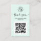 Guión minimalista moderno y código QR en color negro y verde menta verde orden empresarial gracias. Añade tus medios sociales. Con un elegante tipo de letra de script de firma, todos los colores son editables , agregue su logotipo. Revisión de 5 estrellas para sus clientes.