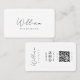 Tarjeta De Visita Guión moderno Monograma en blanco y negro QR
