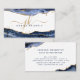 Tarjeta de negocios profesional moderna y elegante con agate azul con acentos espumosos purpurinas de oro falsos personalizados con moda y elegantes iniciales de escritura caligráfica monograma. CAMBIOS: cambie el estilo, el color, el tamaño y la posición del tipo de letra del texto haciendo clic en EDIT. ASISTENCIA: Para obtener ayuda con la modificación o personalización del diseño, el cambio de color, el redimensionamiento, la transferencia del diseño a otro producto o si desea coordinar elementos, póngase en contacto con el diseñador ANTES DE PEDIDOS a través de la pestaña del MENSAJE de charla de Zazzle, o envíe un correo electrónico a makeitaboutyoustore@gmail.com.