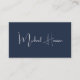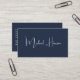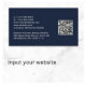 Tarjeta profesional mínima moderna de color azul oscuro con tu nombre en un guión elegante de firma blanca en la parte delantera y tu información de contacto (como correo electrónico, números de teléfono, nombre de firma, identificación de medios sociales y dirección postal) en tipografía blanca limpia y simple en la parte posterior. En la parte posterior, personalice su información de contacto y agregue una dirección url para crear un código QR escaneado conectado a su sitio web, portafolio, perfil de medios sociales o cualquier otra plataforma que muestre su trabajo, lo que facilita a los clientes y clientes explorar su experiencia.