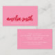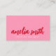 Tarjetas de visita de moda con tu nombre en un tipo de letra en negrita y rojo en un fondo rosado con el título debajo en blanco. Información de contacto en la parte posterior.
