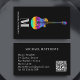 El sitio web del profesor de guitarra qr codifica tarjeta de negocios negra con guitarra eléctrica monocroma y colorida. Diseño de guitarra acuarela colorida en colores brillantes de arcoiris sobre un fondo negro con nombre monograma personalizado y código QR. Agregue sus propios detalles utilizando la plantilla para crear una tarjeta profesional. El diseño perfecto para guitarristas, músicos y profesores de música. Obra de arte original única y tipografía de la artista Catherine Sweetman