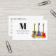 Aumente su presencia profesional con esta atractiva tarjeta de visita diseñada para profesores y músicos de guitarra. Con obras de arte originales de Catherine Sweetman, el diseño vibrante exhibe una colección de guitarras acústicas psicodélicas, semiacústicas y eléctricas de colores vivos. Esta plantilla fácil de usar es totalmente personalizable con tu monograma personalizado, detalles de contacto, código QR del sitio web e íconos de medios sociales, lo que hace que el trabajo en red sea una brisa. Haga una impresión memorable con esta moderna y genial tarjeta de visita.
