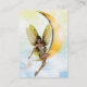 Una hada hermosa que se sienta en la luna anaranjada entre las nubes que dispersan el polvo de hadas. Disponible en los colores de fondo múltiples para la mayoría de los productos.