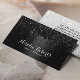 El estilista del cabello y el artista de maquillaje Purpurina negro moderno perfora tarjetas de negocios.