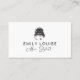 Modern black and white business card for hairstylists, featuring a chic bun hairstyle illustration and elegant script. Clean and professional design perfect for salons, freelance stylists, and beauty professionals.
