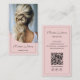 Cree una tarjeta profesional y moderna con una foto personalizado en la parte delantera y detalles personalizados, además de un escaneado código QR en la parte posterior para facilitar el trabajo en red, e iconos editables en los medios sociales. Ajusta fácilmente las fuentes, los colores, el fondo y el diseño para que coincidan perfectamente con el estilo. Ideal para peluqueros, maquilladores, Beauty Salon y negocios que buscan ofrecer una presentación cuidada y profesional.