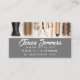 Elegante tarjeta de visita tiene el borde fotográfico superior de herramientas estilistas del cabello del comercio con área de texto gris medio y fuentes modernas blancas. El código QR del personalizado y la información adicional se pueden agregar en la parte posterior.