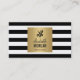 Tarjeta De Visita Hairstylista Retro Black White Strips Gold Square