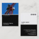 Diseño de una plantilla de tarjeta de visita con un borde blanco negro en la mitad inferior. El diseño frontal incluye una foto o una obra de arte en la mitad superior. El mismo tema se repite en la parte posterior sin la imagen, lo que deja espacio para otros detalles y una mayor personalización. El motivo de tres cuadrados utilizado como elemento decorativo en la parte posterior es de una de las fuentes de imagen útiles de Zazzle y puede ser utilizado como una característica decorativa o reemplazado por su propio logotipo o decoración.
