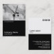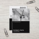 Diseño de una plantilla de tarjeta de visita con un borde blanco negro en la mitad inferior. El diseño frontal incluye una foto o una obra de arte en la mitad superior. El mismo tema se repite en la parte posterior sin la imagen, lo que deja espacio para otros detalles y una mayor personalización. El motivo de tres cuadrados utilizado como elemento decorativo en la parte posterior es de una de las fuentes de imagen útiles de Zazzle y puede ser utilizado como una característica decorativa o reemplazado por su propio logotipo o decoración.