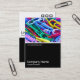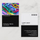 Diseño de una plantilla de tarjeta de visita con un borde blanco negro en la mitad inferior. El diseño frontal incluye una foto o una obra de arte en la mitad superior. El mismo tema se repite en la parte posterior sin la imagen, lo que deja espacio para otros detalles y una mayor personalización. El motivo de tres cuadrados utilizado como elemento decorativo en la parte posterior es de una de las fuentes de imagen útiles de Zazzle y puede ser utilizado como una característica decorativa o reemplazado por su propio logotipo o decoración.