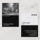 Diseño de una plantilla de tarjeta de visita con un borde blanco negro en la mitad inferior. El diseño frontal incluye una foto o una obra de arte en la mitad superior. El mismo tema se repite en la parte posterior sin la imagen, lo que deja espacio para otros detalles y una mayor personalización. El motivo de tres cuadrados utilizado como elemento decorativo en la parte posterior es de una de las fuentes de imagen útiles de Zazzle y puede ser utilizado como una característica decorativa o reemplazado por su propio logotipo o decoración.