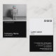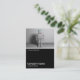 Diseño de una plantilla de tarjeta de visita con un borde blanco negro en la mitad inferior. El diseño frontal incluye una foto o una obra de arte en la mitad superior. El mismo tema se repite en la parte posterior sin la imagen, lo que deja espacio para otros detalles y una mayor personalización. El motivo de tres cuadrados utilizado como elemento decorativo en la parte posterior es de una de las fuentes de imagen útiles de Zazzle y puede ser utilizado como una característica decorativa o reemplazado por su propio logotipo o decoración.