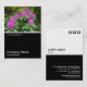 Diseño de una plantilla de tarjeta de visita con un borde blanco negro en la mitad inferior. El diseño frontal incluye una foto o una obra de arte en la mitad superior. El mismo tema se repite en la parte posterior sin la imagen, lo que deja espacio para otros detalles y una mayor personalización. El motivo de tres cuadrados utilizado como elemento decorativo en la parte posterior es de una de las fuentes de imagen útiles de Zazzle y puede ser utilizado como una característica decorativa o reemplazado por su propio logotipo o decoración.