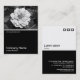 Diseño de una plantilla de tarjeta de visita con un borde blanco negro en la mitad inferior. El diseño frontal incluye una foto o una obra de arte en la mitad superior. El mismo tema se repite en la parte posterior sin la imagen, lo que deja espacio para otros detalles y una mayor personalización. El motivo de tres cuadrados utilizado como elemento decorativo en la parte posterior es de una de las fuentes de imagen útiles de Zazzle y puede ser utilizado como una característica decorativa o reemplazado por su propio logotipo o decoración.