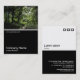 Diseño de una plantilla de tarjeta de visita con un borde blanco negro en la mitad inferior. El diseño frontal incluye una foto o una obra de arte en la mitad superior. El mismo tema se repite en la parte posterior sin la imagen, lo que deja espacio para otros detalles y una mayor personalización. El motivo de tres cuadrados utilizado como elemento decorativo en la parte posterior es de una de las fuentes de imagen útiles de Zazzle y puede ser utilizado como una característica decorativa o reemplazado por su propio logotipo o decoración.