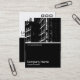 Diseño de una plantilla de tarjeta de visita con un borde blanco negro en la mitad inferior. El diseño frontal incluye una foto o una obra de arte en la mitad superior. El mismo tema se repite en la parte posterior sin la imagen, lo que deja espacio para otros detalles y una mayor personalización. El motivo de tres cuadrados utilizado como elemento decorativo en la parte posterior es de una de las fuentes de imagen útiles de Zazzle y puede ser utilizado como una característica decorativa o reemplazado por su propio logotipo o decoración.