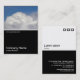 Diseño de una plantilla de tarjeta de visita con un borde blanco negro en la mitad inferior. El diseño frontal incluye una foto o una obra de arte en la mitad superior. El mismo tema se repite en la parte posterior sin la imagen, lo que deja espacio para otros detalles y una mayor personalización. El motivo de tres cuadrados utilizado como elemento decorativo en la parte posterior es de una de las fuentes de imagen útiles de Zazzle y puede ser utilizado como una característica decorativa o reemplazado por su propio logotipo o decoración.