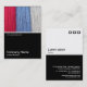 Diseño de una plantilla de tarjeta de visita con un borde blanco negro en la mitad inferior. El diseño frontal incluye una foto o una obra de arte en la mitad superior. El mismo tema se repite en la parte posterior sin la imagen, lo que deja espacio para otros detalles y una mayor personalización. El motivo de tres cuadrados utilizado como elemento decorativo en la parte posterior es de una de las fuentes de imagen útiles de Zazzle y puede ser utilizado como una característica decorativa o reemplazado por su propio logotipo o decoración.