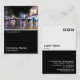 Diseño de una plantilla de tarjeta de visita con un borde blanco negro en la mitad inferior. El diseño frontal incluye una foto o una obra de arte en la mitad superior. El mismo tema se repite en la parte posterior sin la imagen, lo que deja espacio para otros detalles y una mayor personalización. El motivo de tres cuadrados utilizado como elemento decorativo en la parte posterior es de una de las fuentes de imagen útiles de Zazzle y puede ser utilizado como una característica decorativa o reemplazado por su propio logotipo o decoración.