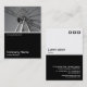 Diseño de una plantilla de tarjeta de visita con un borde blanco negro en la mitad inferior. El diseño frontal incluye una foto o una obra de arte en la mitad superior. El mismo tema se repite en la parte posterior sin la imagen, lo que deja espacio para otros detalles y una mayor personalización. El motivo de tres cuadrados utilizado como elemento decorativo en la parte posterior es de una de las fuentes de imagen útiles de Zazzle y puede ser utilizado como una característica decorativa o reemplazado por su propio logotipo o decoración.