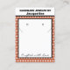 Handmade Jewelry by Name typography in black against white background. Terra Cotta and white polka dots. Crafted with love written in black script (keep or insert short tagline, or delete to leave area blank). Two Small Circles against white and black framed background. NOTE: Circles and Lines on each side are not pre-cut, you will need to use a Small hole punch, and scissors or box knife cutter type to make clean cut holes and Small slits, to then place your Earring Studs and Necklace in. Backside has small red heart. Insert telephone number, email address, website, social media handle, as needed. Insert Your Business QR Code for customers to Shop 24/7, or delete as needed. Original Design by TamiraZDesigns.