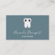 Tarjetas de visita con un dibujo de un gran diente blanco con una sonrisa kawaii linda y grandes ojos felices.