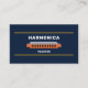 A dark blue business card with a touch of yellow color and an illustration of a harmonica. The back comes with fully customizable contact information decorated by icons. Perfect for harmonicist player, lessons, teacher, musician performer, concert, etc.