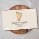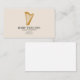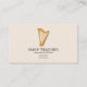 A minimalist business card featuring a gold harp illustration on a cream color background. A great idea for harpists, musicians, teachers, instructors or concerts.