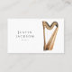 Un elegante músico arpista y una tarjeta de visita para profesores de música con un arpa acuarela.
