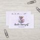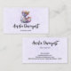 Tarjetas de visita con un ilustracion de un mítico dragón. Escala morada y azul. Una corona dorada florida con cuernos adorna su cabeza. Mágico, divertido y amigable.